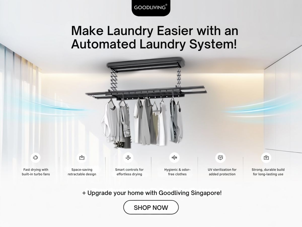 At GoodLiving Singapore, we specialize in Smart laundry system designed for modern living in Singapore. Our smart drying racks, ceiling-mounted laundry systems, and electric clothes hangers help homeowners save space and dry clothes effortlessly. With a focus on convenience and practicality, we offer high-quality, durable solutions that fit seamlessly into any home. Whether you’re upgrading your laundry setup or looking for a hassle-free drying experience, GoodLiving has the perfect solution for you.